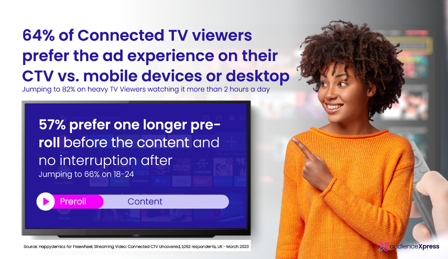 Data remains a sensitive issue, and with the end of third-party cookies nearing, there are reasons to accelerate and regain consumer trust and ensure that their privacy is at the core of industry concerns. According to the study, almost a third (32%) of UK CTV viewers have a preference for contextual ads that are informed by the content they are watching. This percentage goes up to 42% among the 25-34 age group. Moreover, 57% of UK CTV respondents favour one longer ad break before the content and no ads afterwards; this was especially the case for respondents aged 18 to 24 years old.